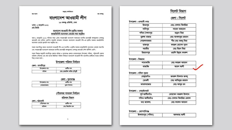 ষষ্ঠ ধাপে আগামী ৩১ জানুয়ারি ২০২২ ইংরেজী অনুষ্ঠিতব্য ইউনিয়ন পরিষদ নির্বাচনে সিলেটের বিশ্বনাথ উপজেলার লামাকাজী ও খাজাঞ্চী ইউনিয়নে নৌকার প্রার্থী চূড়ান্ত করা হয়েছে। লামাকাজী ইউনিয়নে ইউনিয়ন যুবলীগের সভাপতি ফয়ছল আহমদকে এবং খাজাঞ্চী ইউনিয়নে বৃহত্তর সিলেট আওয়ামী পরিবার জেদ্দার সভাপতি আরশ আলী গণিকে নৌকার প্রার্থী হিসেবে চূড়ান্ত মনোনয়ন দেওয়া হয়েছে।
