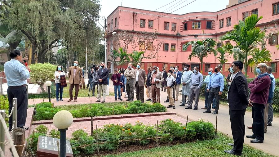 অতিথিদের মুক্তিযুদ্ধের স্মৃতিবিজড়িত ঢাকা বিশ্ববিদ্যালয়ের বিভিন্ন স্থান ও ঘটনা সম্পর্কে জানান সাংবাদিক ও বীর মুক্তিযোদ্ধা অজয় দাশগুপ্ত।