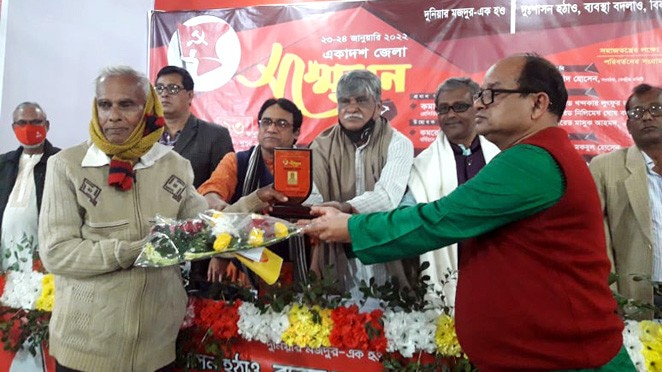 সম্মেলনের প্রধান অতিথি বাংলাদেশের কমিউনিস্ট পার্টি (সিপিবি) কেন্দ্রীয় কমিটির সহকারী সাধারণ সম্পাদক কমরেড কাজী সাজ্জাদ জহির চন্দন তাদের হাতে সম্মাননা স্মারক তুলে দেন।
