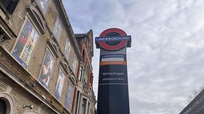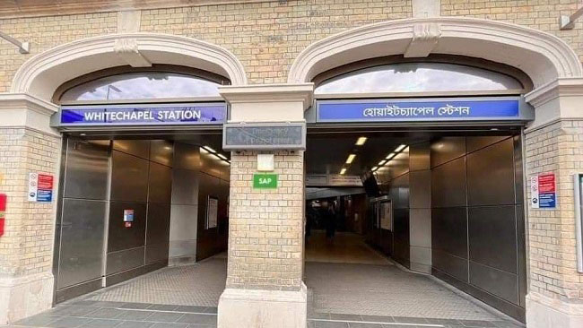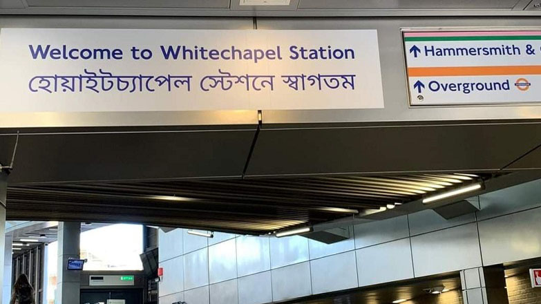লন্ডনের হোয়াইটচ্যাপেল স্টেশনে বাংলায় সাইনবোর্ড