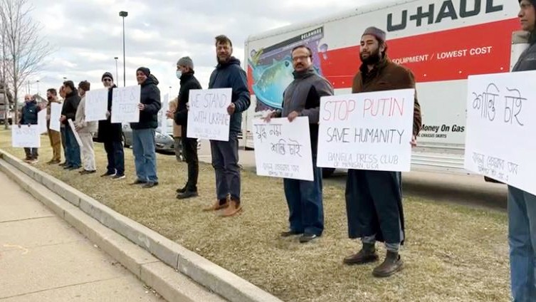 বাংলা প্রেসক্লাব মিশিগান’র উদ্যোগে যুদ্ধ বিরোধী সমাবেশ