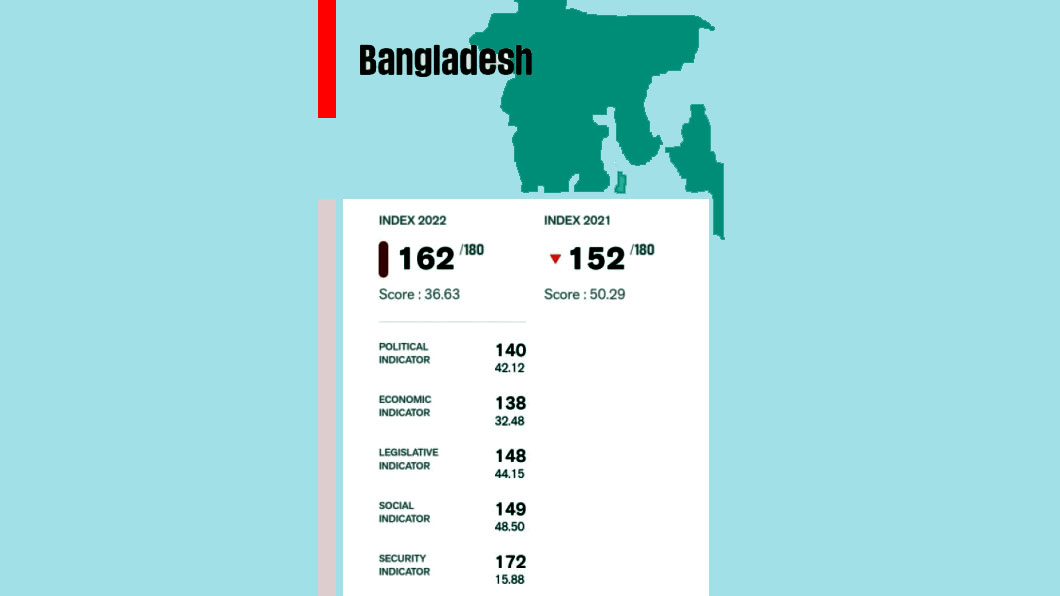 আরএসএফের প্রতিবেদন বলছে— ‘বেসরকারি খাতের মিডিয়া খাতে ৩ হাজার প্রিন্ট মিডিয়া, ৩০টি রেডিও স্টেশন, ৩০টি টেলিভিশন চ্যানেল এবং কয়েক শতাধিক সংবাদ ওয়েবসাইট রয়েছে। দুটি শীর্ষস্থানীয় দৈনিক, বাংলা ভাষার প্রথম আলো এবং ইংরেজি ভাষার দ্য ডেইলি স্টার, সম্পাদকীয় স্বাধীনতা বজায় রেখেছে।’