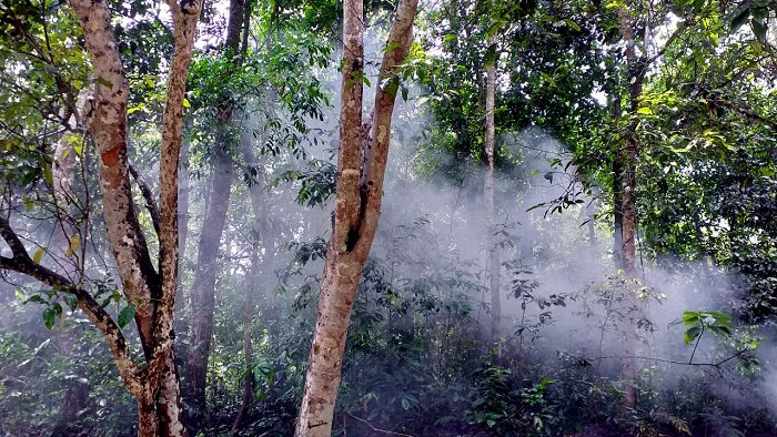 ‘এ সময় ঐ এলাকায় আগুনের মাধ্যমে ধোয়া উড়াতে দেখা গেছে। ওখানে সকাল থেকে একদল হনুমান ছিল কিন্তু ইউনিট সাজানোর পর অনেকে হনুমানগুলো কে বিরক্ত করেছিল তখন আমি ও বণ্যপ্রাণী গবেষক শিমুল নাথ চিত্রগ্রহণকারী দলের কাছে গিয়ে বুঝাই প্রাণিদের বিরক্ত না করতে। এরপর ওখানে আগুণ লাগিয়ে ধোঁয়া উড়িয়ে দেয়া হয় ওখানে।’