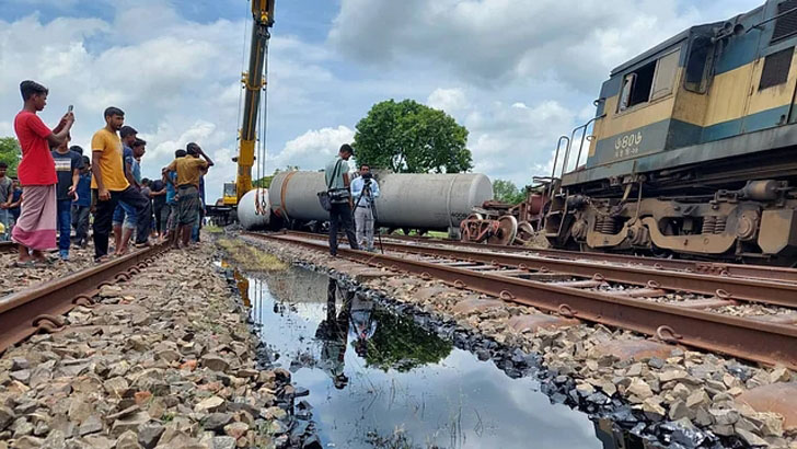 ট্রেন লাইনচ্যুত : ওয়াগন থেকে ছড়িয়ে পড়েছে ৪২ টন তেল