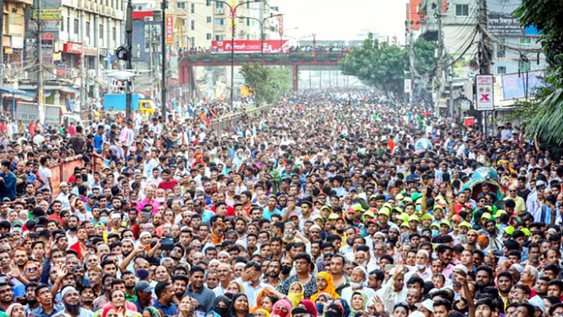 জমায়েত সম্পর্কে ওবায়দুল কাদের বলেন— ‘আমার সামনে মাথা কোথায় জানি না। দেখছি আর দেখছি। আমার পেছনে আমেরিকান দূতাবাস পর্যন্ত। লোক আর লোক। বিদেশিদের কাছে নালিশ করে বাংলাদেশ নালিশ পার্টি। কিন্তু বিদেশিরাই এখানে থাকে। তারা দেখুন কার কত শক্তি।’