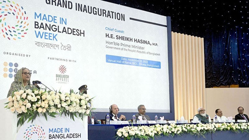 রবিবার সকালে বাংলাদেশ পোশাক প্রস্তুত ও রপ্তানিকারক সমিতি (বিজিএমইএ) আয়োজিত ‘মেড ইন বাংলাদেশ উইক-২০২২’ এর উদ্বোধন অনুষ্ঠানে প্রধান অতিথির ভাষণে তিনি এই আহ্বান জানান।