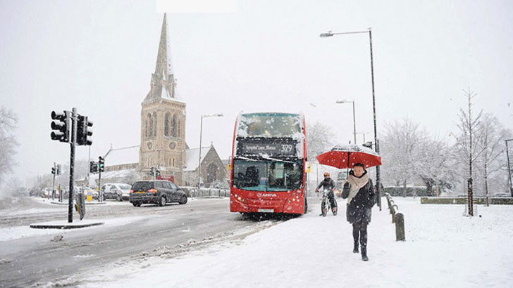 কয়েক বছর পর প্রচন্ড ঠান্ডা ও তুষারপাতে যুক্তরাজ্যের জনজীবন স্থবির হয়ে পড়েছে। রাতে তাপমাত্রা মাইনাস ৪ ডিগ্রীতে নেমে গিয়েছিল। মাত্র কয়েক দিন পর বড়দিন উৎসব হলেও শুক্র ও শনিবার মানুষের চলাচলও অনেকটা কম ছিল।